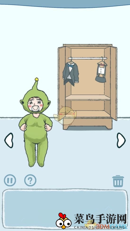 解锁柜门,解锁大叔的神秘外星服饰,再从沙发靠背下找到神秘电池。将电池交给大叔,他将乘坐飞碟神奇离去,猫咪也将重获自由。