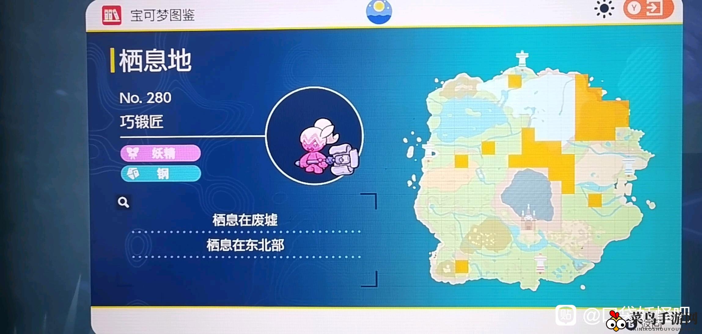 在《宝可梦朱紫》广阔的地图上,巧锻匠的身影藏匿于东北部的荒废区域,黄色标记处即为具体位置所在。