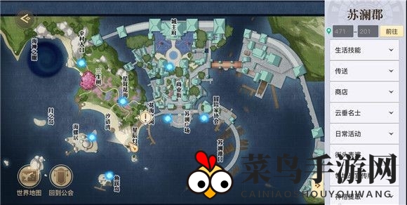 你的冒险从与新人冒险家「苏澜郡(471-201)」的对话开始,这将引领你进入寻宝的旅程。