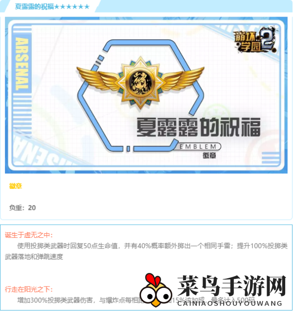 揭秘《崩坏学园2》中的神器徽章——“夏露露的祝福”,它的神秘力量不容忽视。掌握其使用之道,才能发挥其极致威力。许多玩家可能对其潜能尚有疑惑,现在就让我们深入解析。