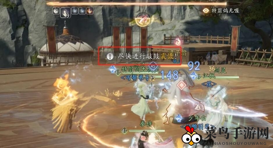 战斗中,一旦出现敲鼓信号,远程玩家需立刻前往大鼓处敲击,忽视此环节,boss将大幅提升伤害、防御并回血!
