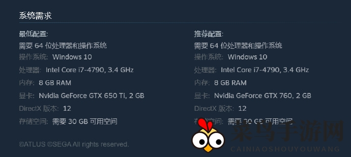 《女神异闻录3:Reload》在Steam上架,公开了其PC版配置要求。游戏仅需GTX 760显卡和四代i7处理器,便能享受流畅游戏体验。此外,游戏需占用30GB硬盘空间,配置要求不高。游戏还将应用D加密技术,确保玩家权益。