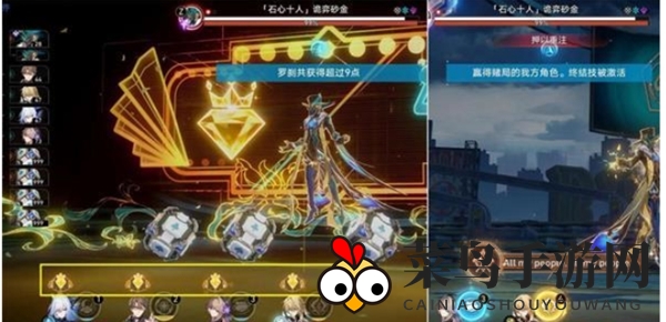 3、BOSS第二阶段出现4个骰子,选择4个角色与诡异砂金比大小。每个角色先使用群体攻击终结技,再使用群体攻击战技,第二阶段前请确保终结技能量充足,力争第一波就获得成就。