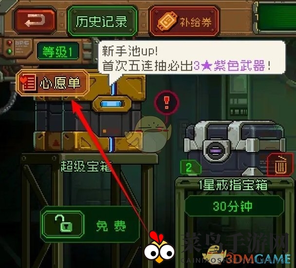 2、装备补给馆,轻触左侧的心愿单图标;