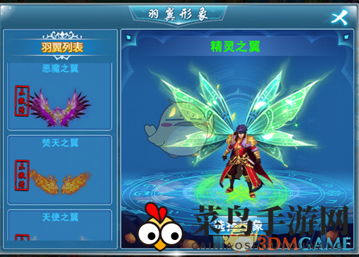 1.形象选择:在这里,玩家可以浏览所有翅膀形象,挑选心仪的翅膀形象。