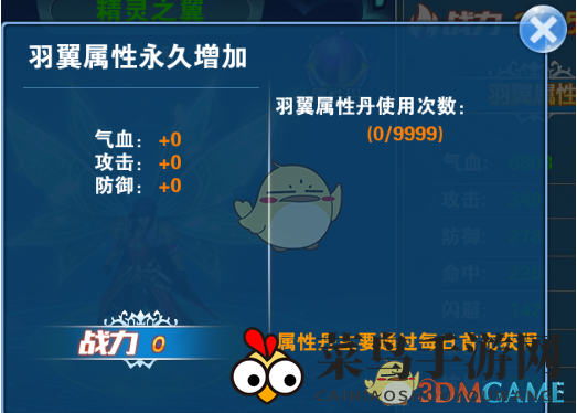 3.属性丹:通过每日首充和运营活动获取的翅膀属性丹,可强化翅膀属性。查看已使用属性丹数量及增加的总战斗力。