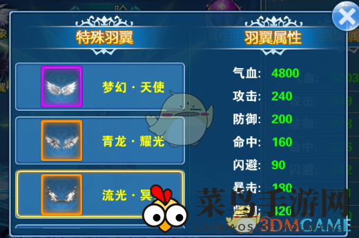 2.特殊翅膀:查看特殊翅膀的战斗力属性,领略不同翅膀的强大之处。