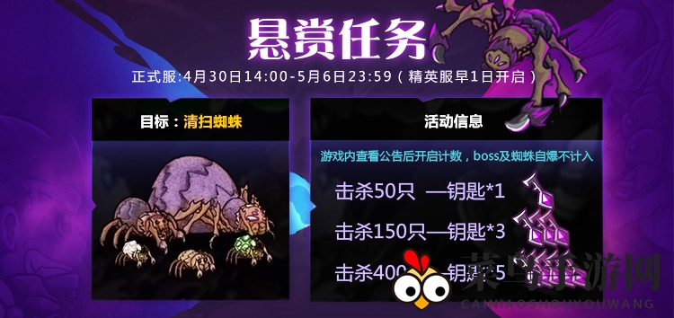 活动期间,BOSS蜘蛛及其自爆小弟不参与击杀次数统计。