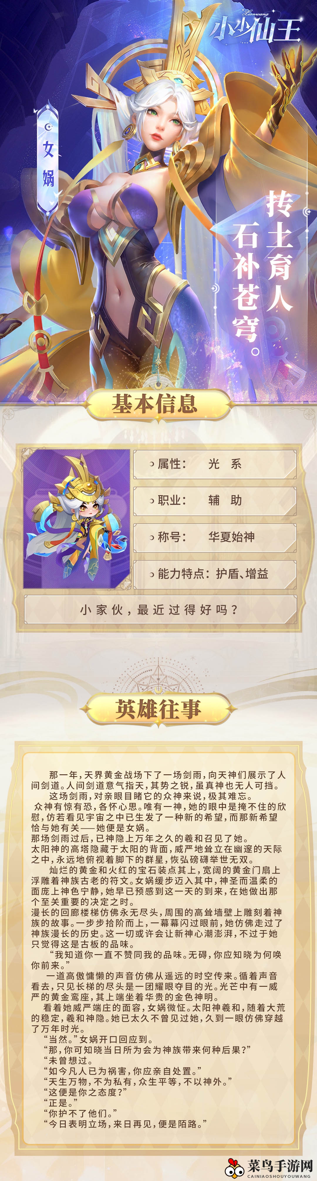 《小小仙王》女娲养成攻略与阵容搭配指南完毕,更多游戏攻略,敬请关注手游网资讯更新!