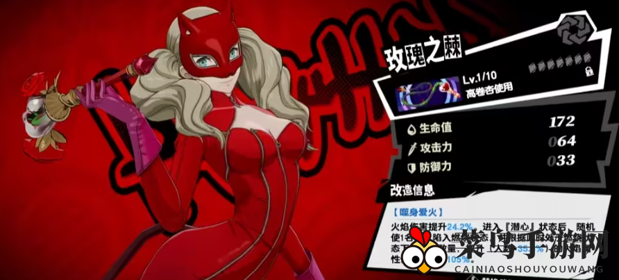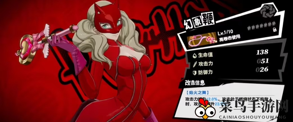 因此,武器选择上,推荐使用能提升攻击力和燃烧伤害的【幻象鞭】,或者能提升火焰伤害并随机使敌人燃烧的【玫瑰之棘】,这两把武器都能与高卷杏的技能机制完美结合,大幅增强她的爆发伤害。