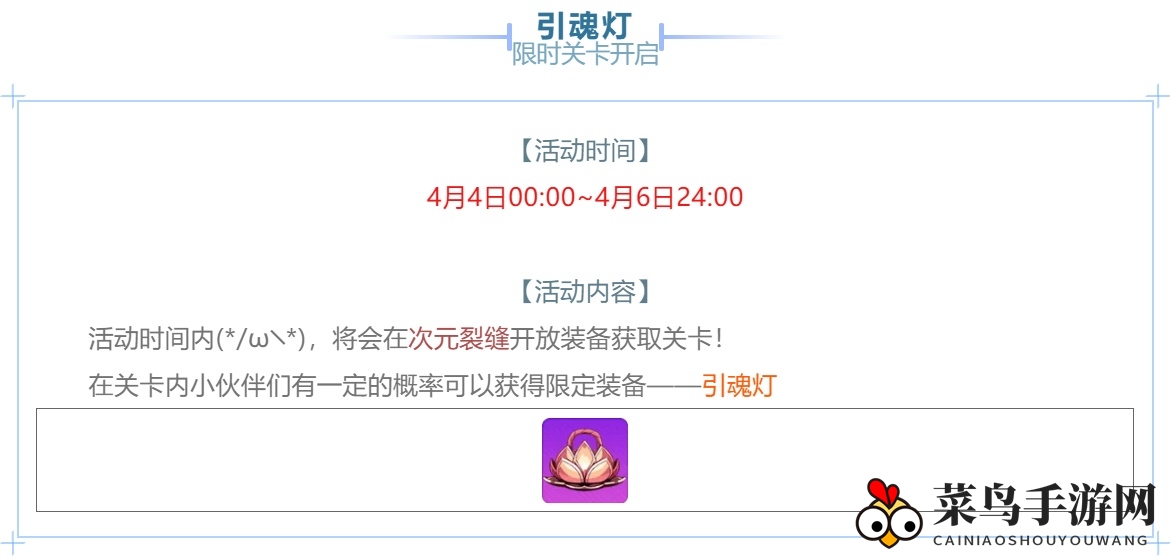 在全新版本活动期间,独家限时关卡【引魂灯】等你勇敢挑战!