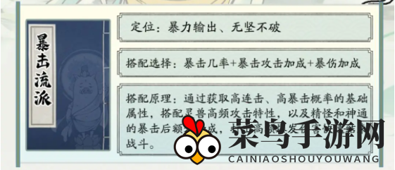 搭配原理:通过强化连击、高暴击概率的初始属性,结合灵兽的高频攻击特性,以及精怪和神通的暴击追加效果,实现高额爆发伤害,快速结束战斗。