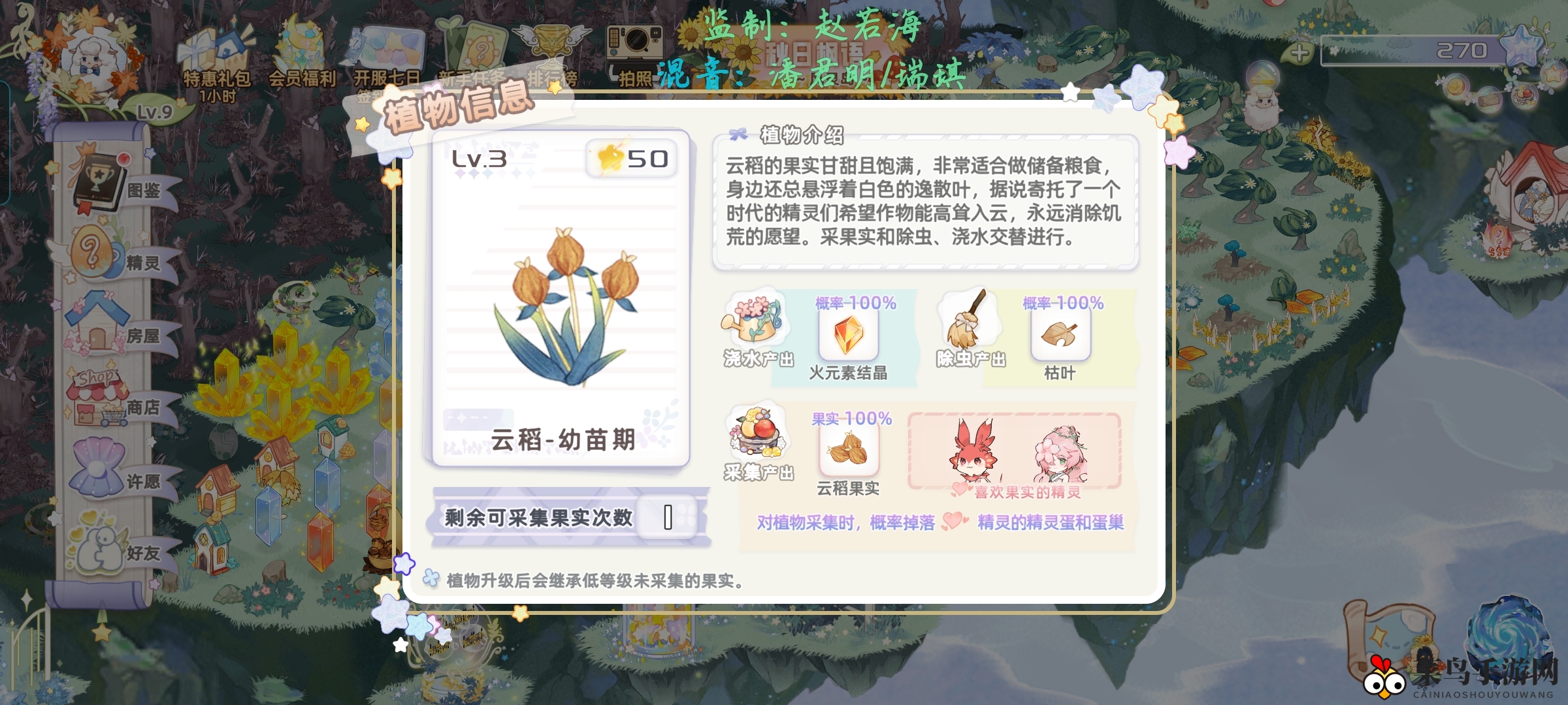 在游戏机制中,采集植物时有机会获得心仪的精灵蛋巢,蛋巢需150个白星星解锁,也是获取精灵蛋的主要途径。建议优先偷取能产出你主力精灵的植物(点击植物可查看详细信息)。
