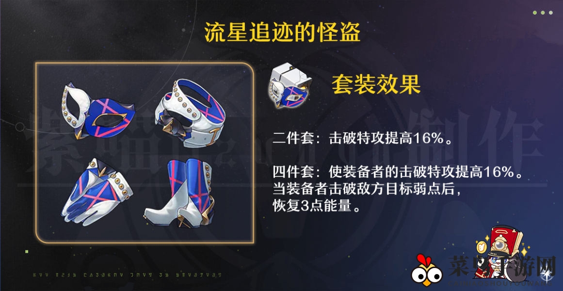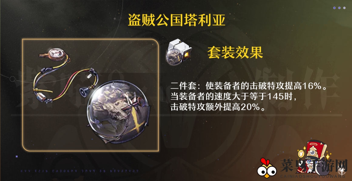 解析:该套装的二件套能为角色提供击破特攻加成,而四件套则能同谐主施放终结技时,为全队带来击破特攻效果,虽然效果仅持续2回合,但实际可持续3回合,建议优先装备同谐主。在当前版本中,这套装备无疑是毕业之选。