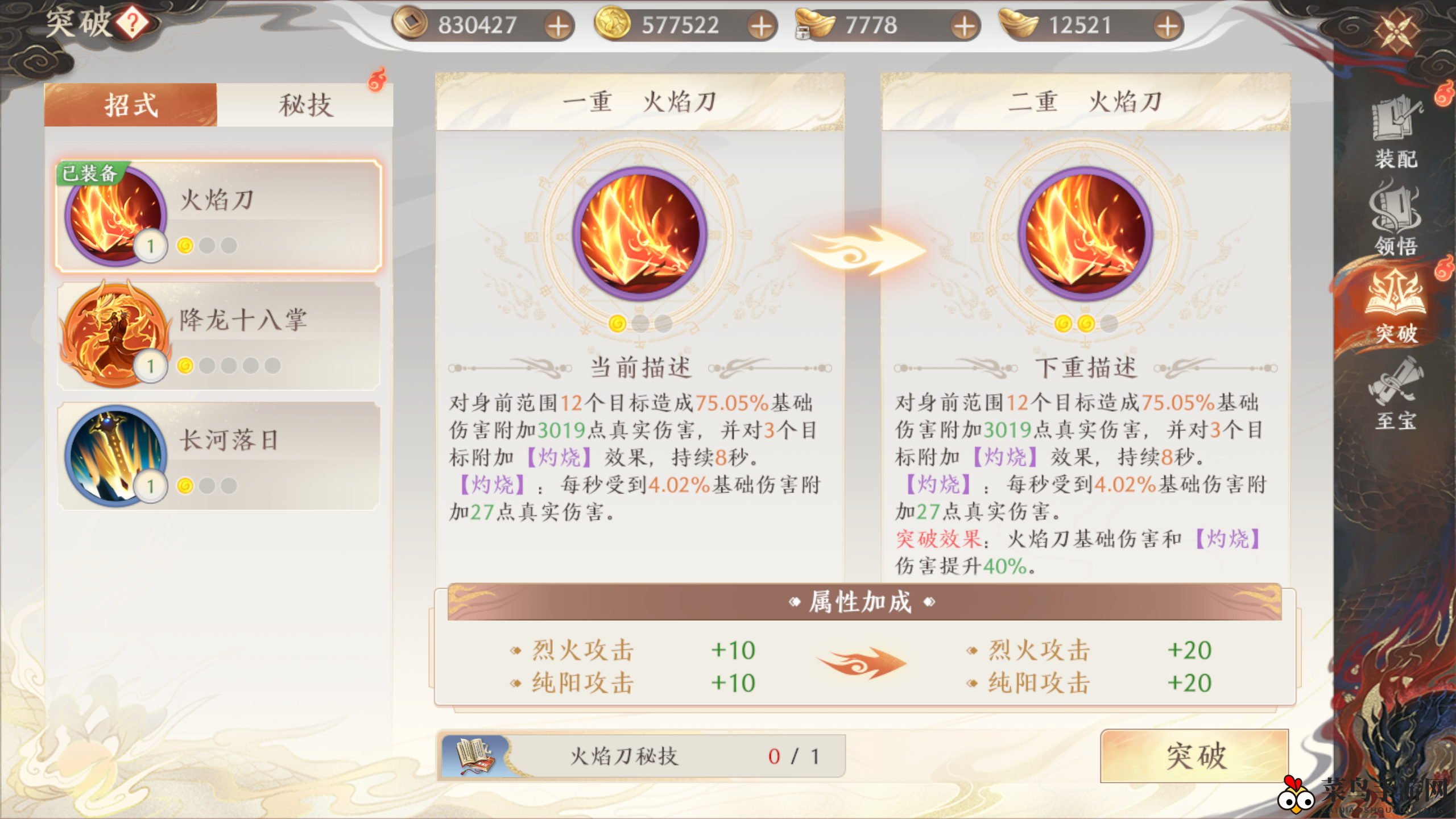 绝学突破可大幅强化技能效果,并为角色提供属性加成。