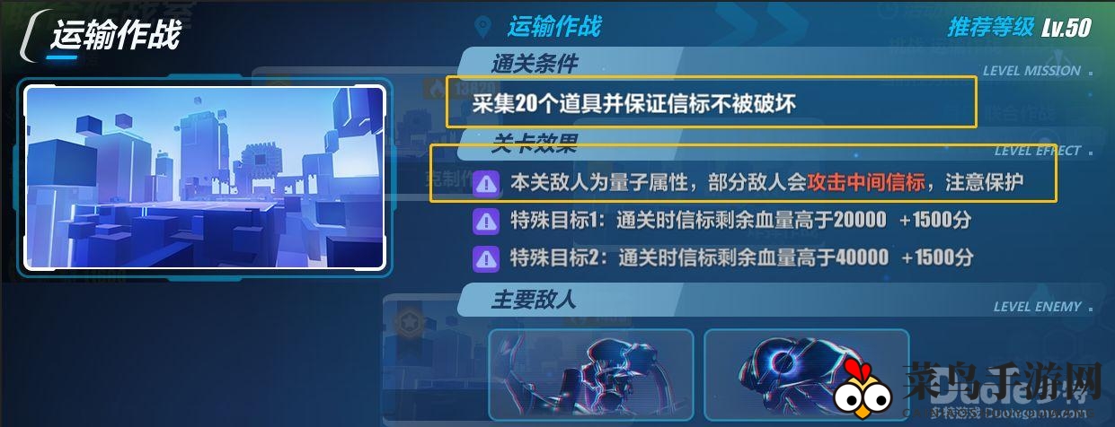 「运输作战」关卡强调团队协作,量子敌人会攻击中央信标,只有成功采集20个道具并保护信标,才能达成通关目标!
