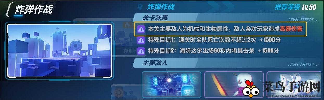 「炸弹作战」关卡中,机械与生物属性的敌人横行,玩家需小心应对敌方炸弹释放的巨大威胁。