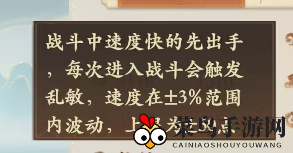 【战斗中,速度较快的角色将优先出手。每次进入战斗都会触发乱敏,速度在±3%的范围内波动,波动上限为±50点】