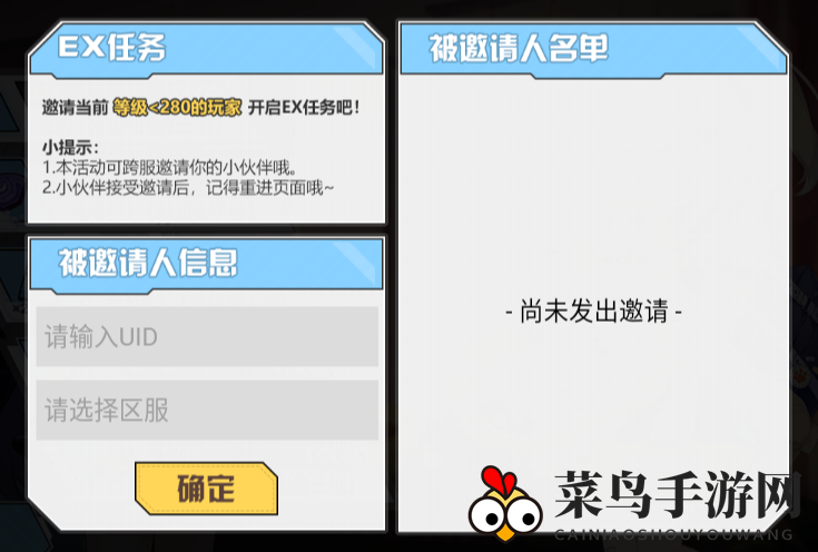 Tips:活动期间,每位玩家只能确认一对EX任务伙伴,请务必谨慎选择你的队友!