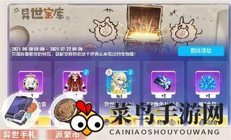 通过探索企划中的区域、进行寻宝挑战、开启宝箱等方式,可获取活动代币异世手札、派蒙币,前往活动商店兑换丰厚奖励!