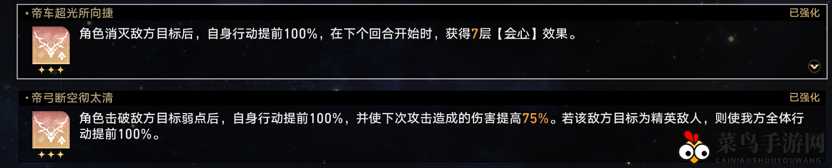 (若【杀敌回能】未出现,也能通关,因为角色所需的能量并不特别多,且角色能量回复速度也很快。但【杀敌再动】是必须的!)