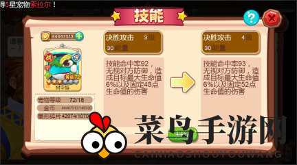 1、技能提升前,宠物须达到相应等级要求