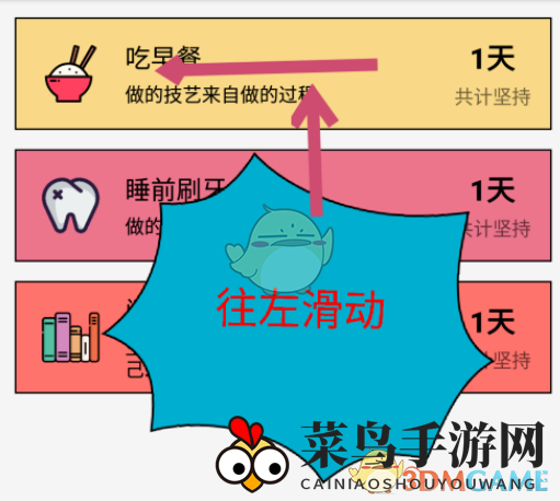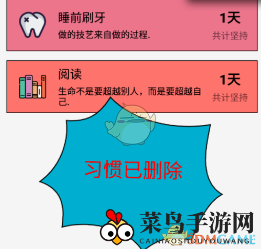 2、踏入全部习惯的页面,你会看到一排排习惯的卡片。挑选你想要移除的习惯,随后向左滑动卡片。
