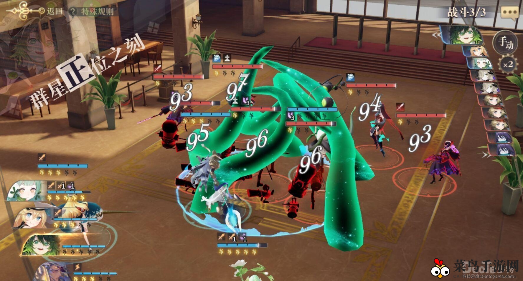 纳兹依靠暴击进行攻击,这一波中纳兹血量较高,并能提升己方幻书的攻击力,战斗相对艰难。因此,玩家需集中火力攻击前排的三个纳兹,她们对玩家的威胁较大。至于剩余的四个变异散佚,虽然能力略强,但实际战斗较为简单。