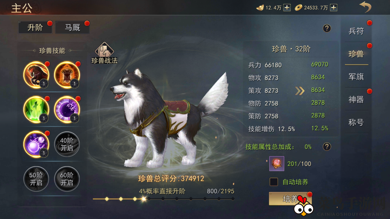 珍兽强化,属性再提升,战斗力再上一层楼。