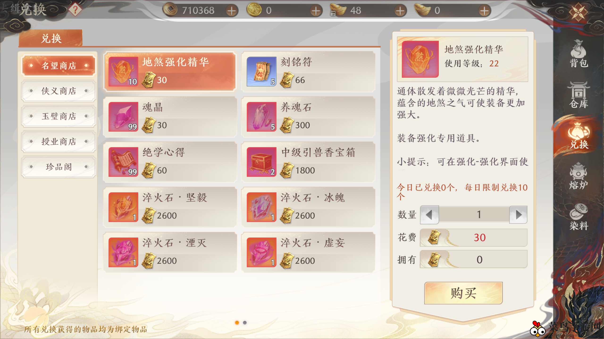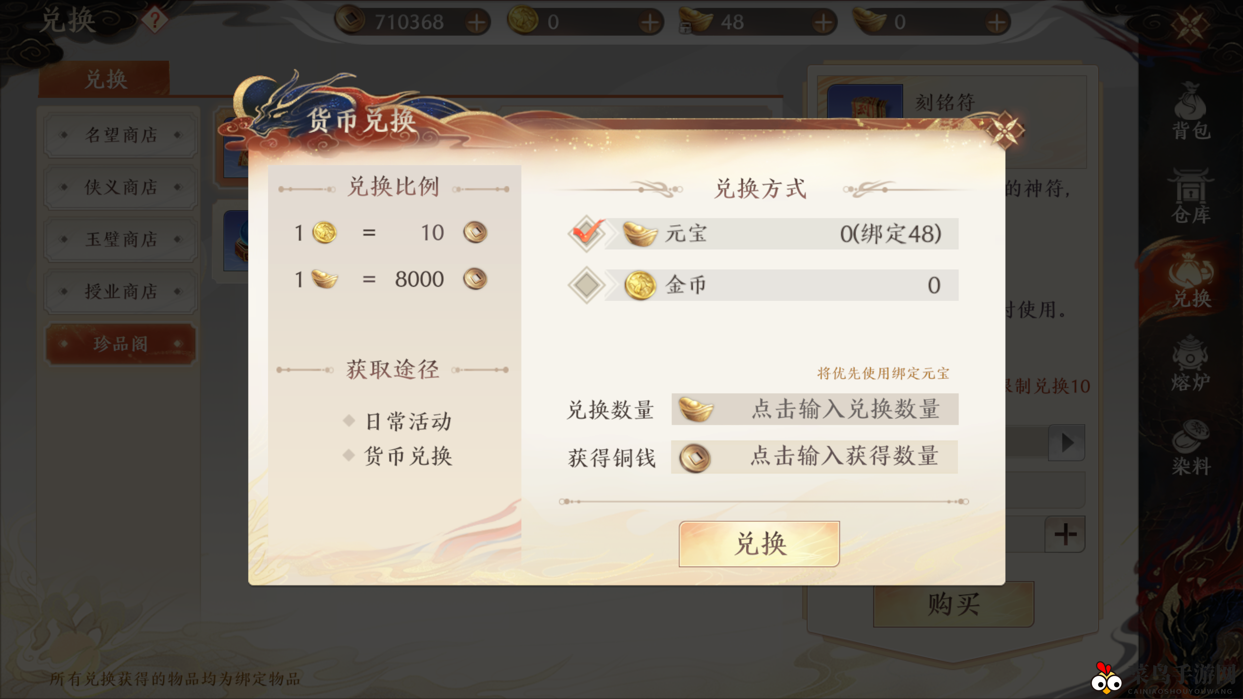 2)使用金币和元宝进行兑换。