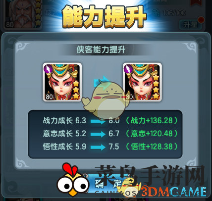 侠士升星后,其战力、意志、悟性的成长速度将得到显著提升。