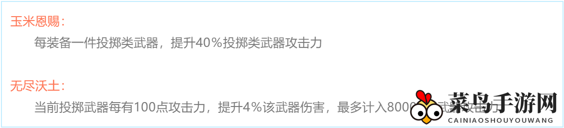 装备任何一件投掷型武器,就能让你获得40%的额外攻击力。