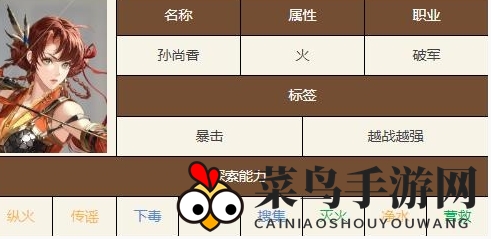 2、孙尚香,火属性破军型,以暴击和伤害著称,更能持续灼烧敌人。