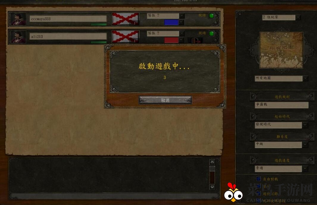 1:通过游侠对战平台《帝国时代3:亚洲王朝》房间进入游戏。