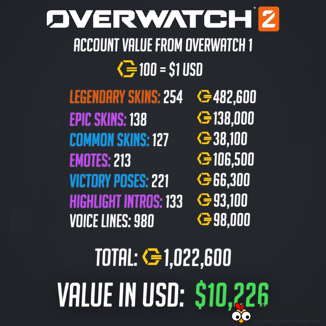《守望先锋》全皮肤账号的市值是多少?Reddit用户“RevJoystick”为我们解答了这个疑问。