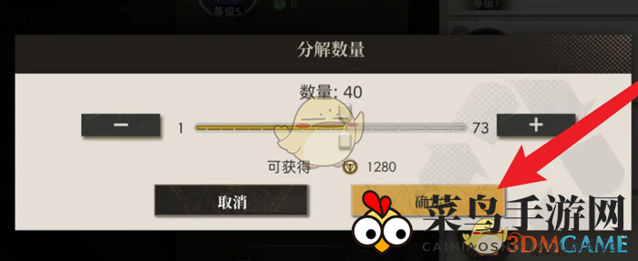4、选择分解数量,确认无误后,点击确定,分解成功,轻松赚取游戏货币。