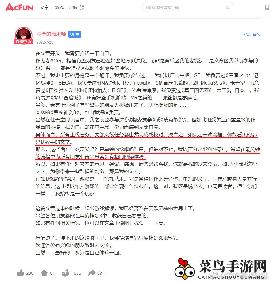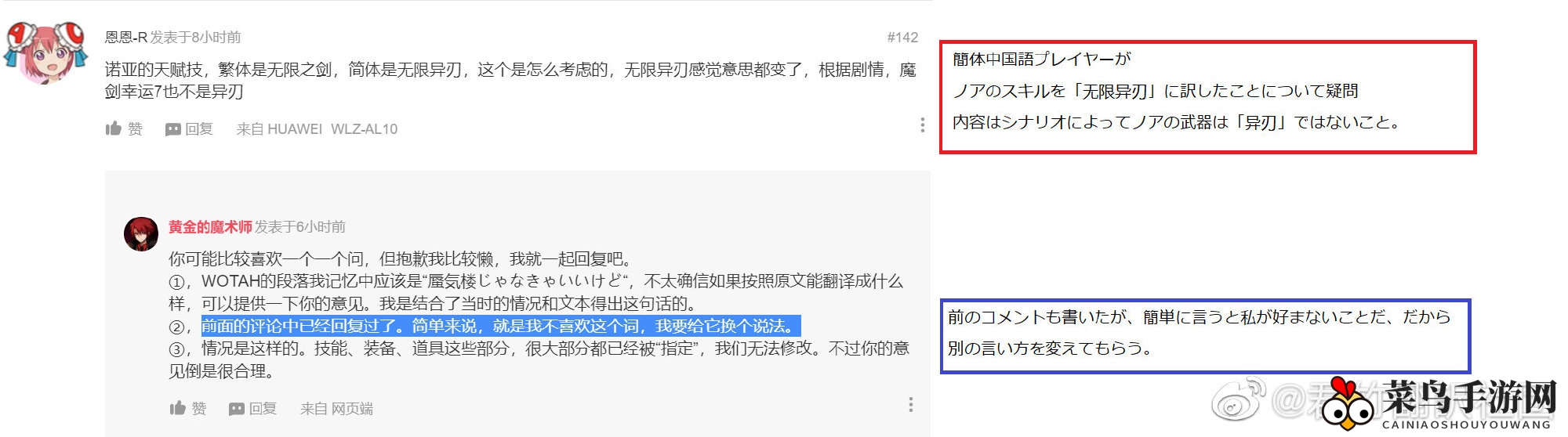 《异度神剑3》的主要翻译者“黄金的魔术师”在A站对简中翻译进行了回应。面对为何不翻译“海市蜃楼”、“受身”、“命运共同体”等词汇的提问,译者表示:“我不喜欢。”
