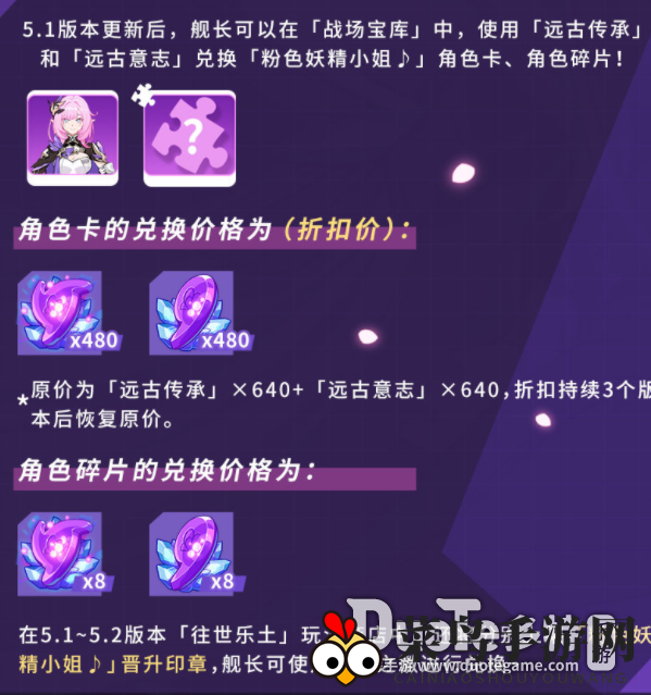 全新S级角色「粉嫩小精灵?」惊艳亮相!自5.1版本更新起,玩家可通过「远古传承」和「远古意志」兑换该角色整卡与角色碎片。
