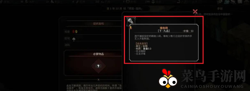 点击奇遇,并将捕虫网放入所需物品栏。
