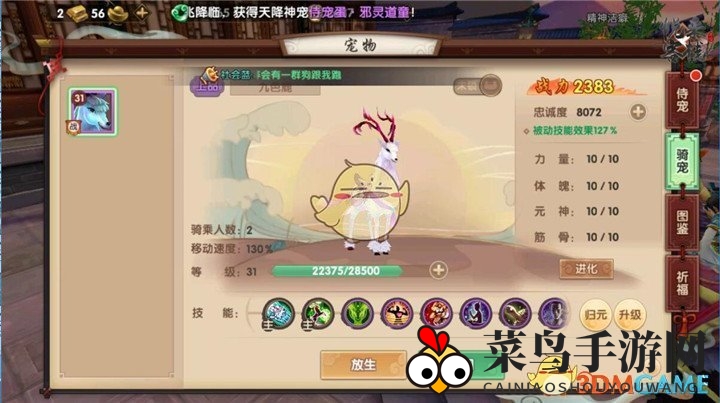 侍宠与骑宠也能大幅提升战斗力。虽然这些道具价格不菲,但通过归元葫芦调整基础属性、融合或提升属性点来解锁神通技能,能让你的战斗力实现质的飞跃。