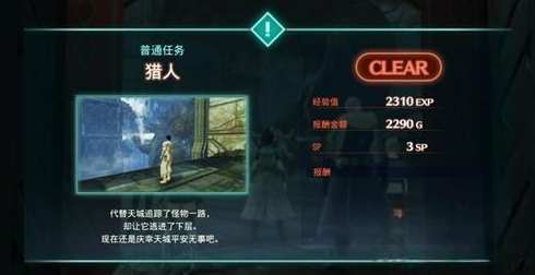 任务奖励:获得2310经验值、2290金币、3点技能点。