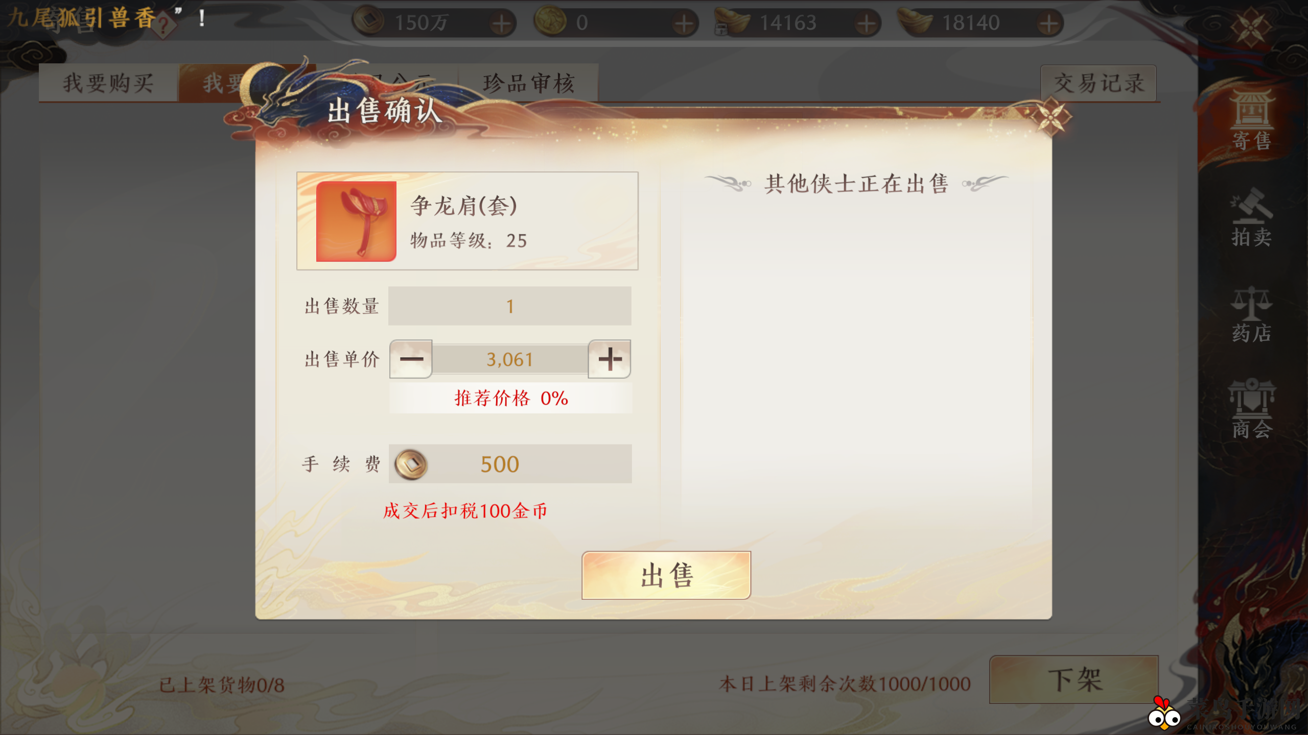 系统自动计算出售数量、单价、手续费和税金,一切掌握在手。