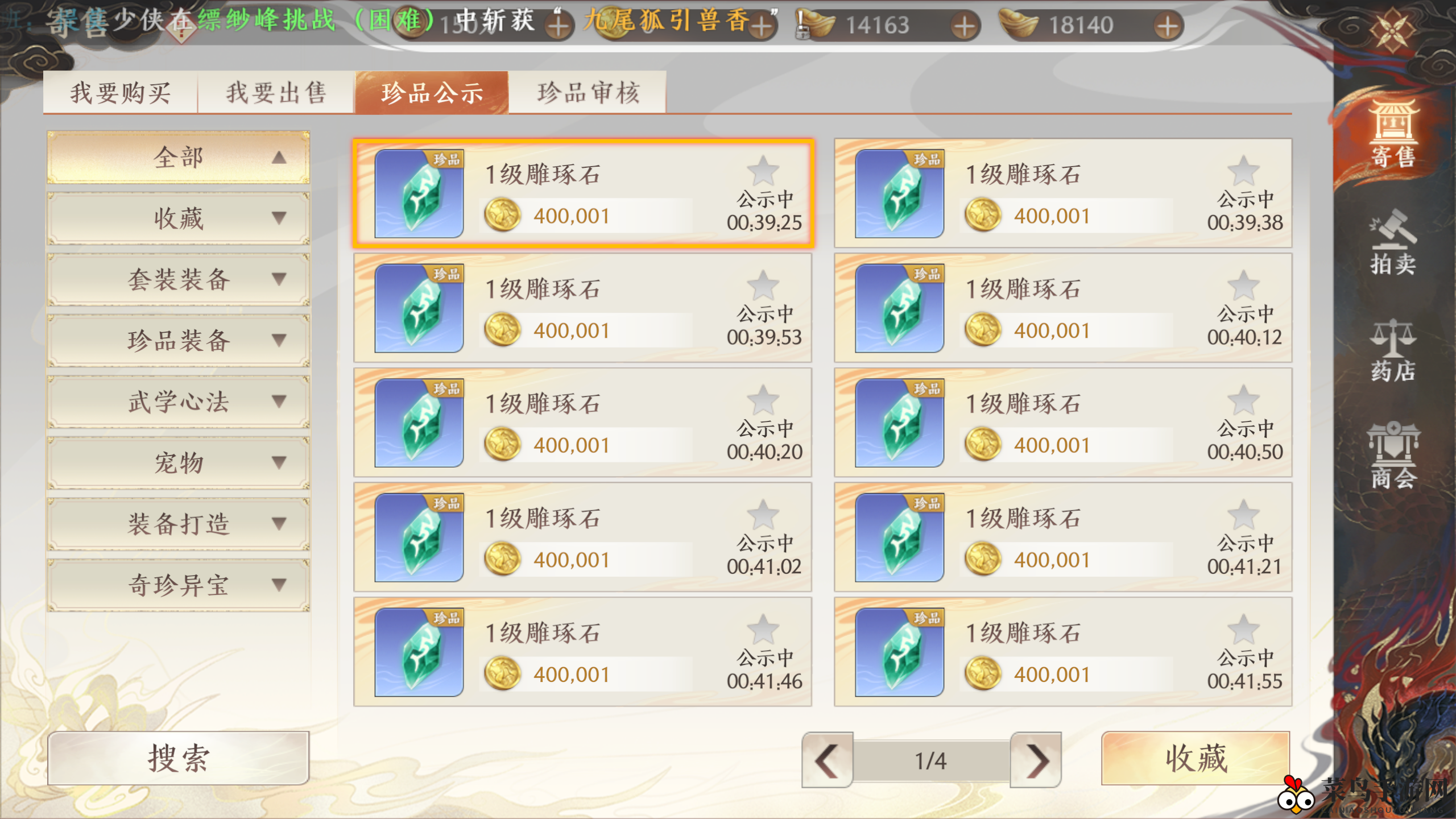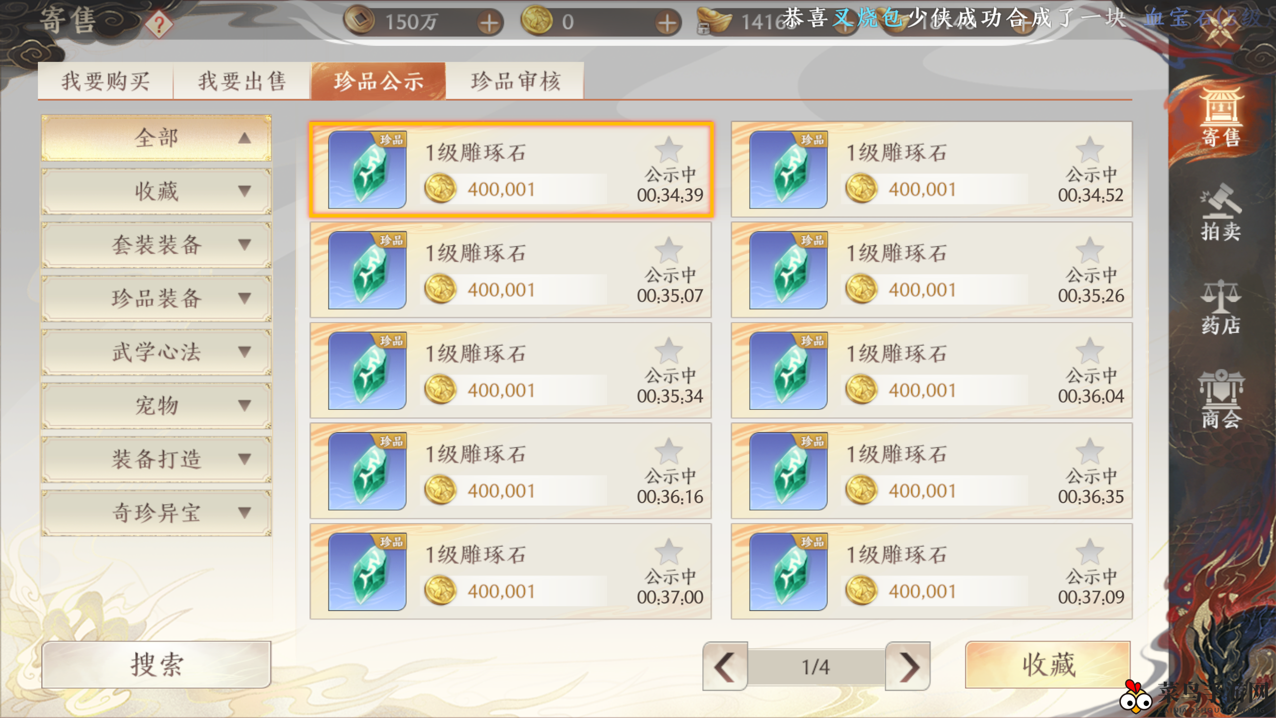 在【交易】-【我要出售】中,少侠可轻松上架自己的宝物。