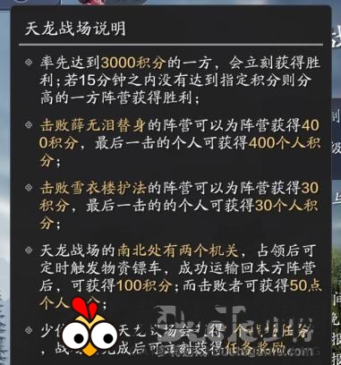 40v40的天龙战场,阵营间的激烈对抗,仅限同阵营玩家组队,每周三晚两场,每场15分钟,是名望与荣誉的双重试炼。