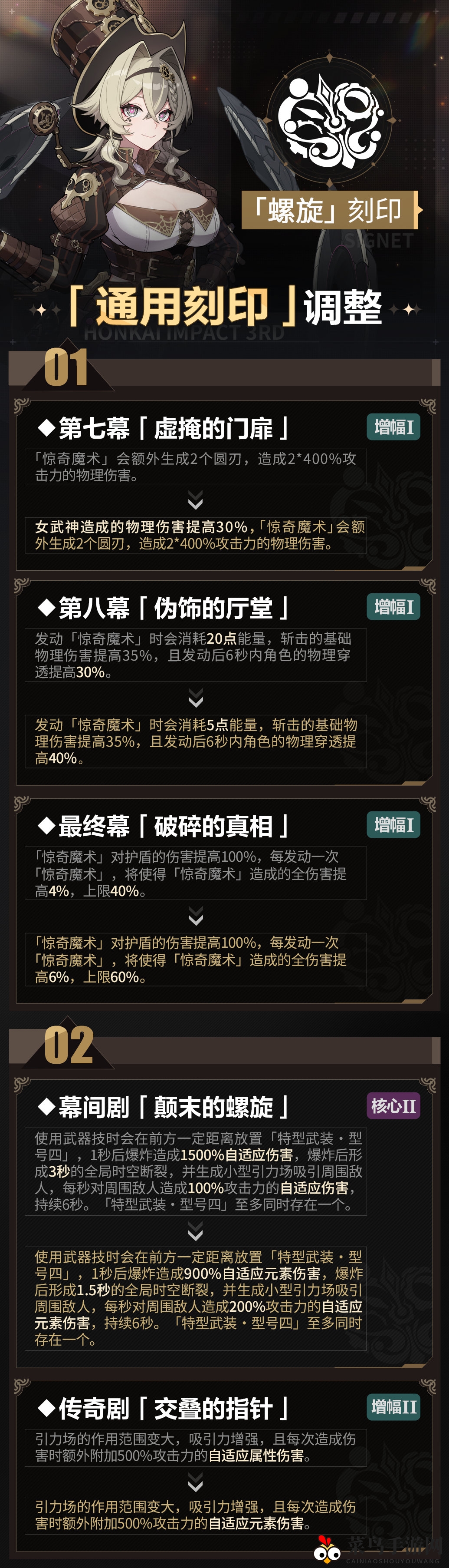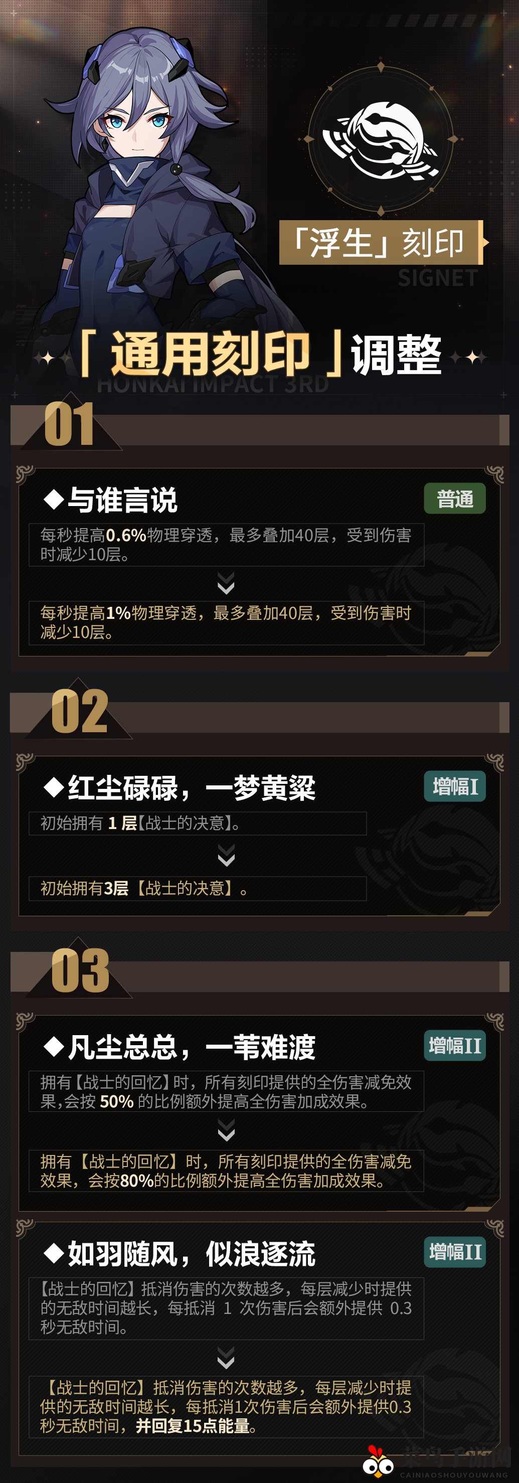 最近,备受期待的《崩坏3》迎来了重量级更新,主要针对浅层序列进行了深度优化,并对众多刻印进行了全面调整。两大新角色织羽梦旌和终末协理0017也将加入可选角色阵容。只需登录游戏,即可轻松完成更新,部分玩家可能需要更新客户端。以下是本次更新的详细内容,让我们一探究竟,看看哪些刻印将迎来全新变化。