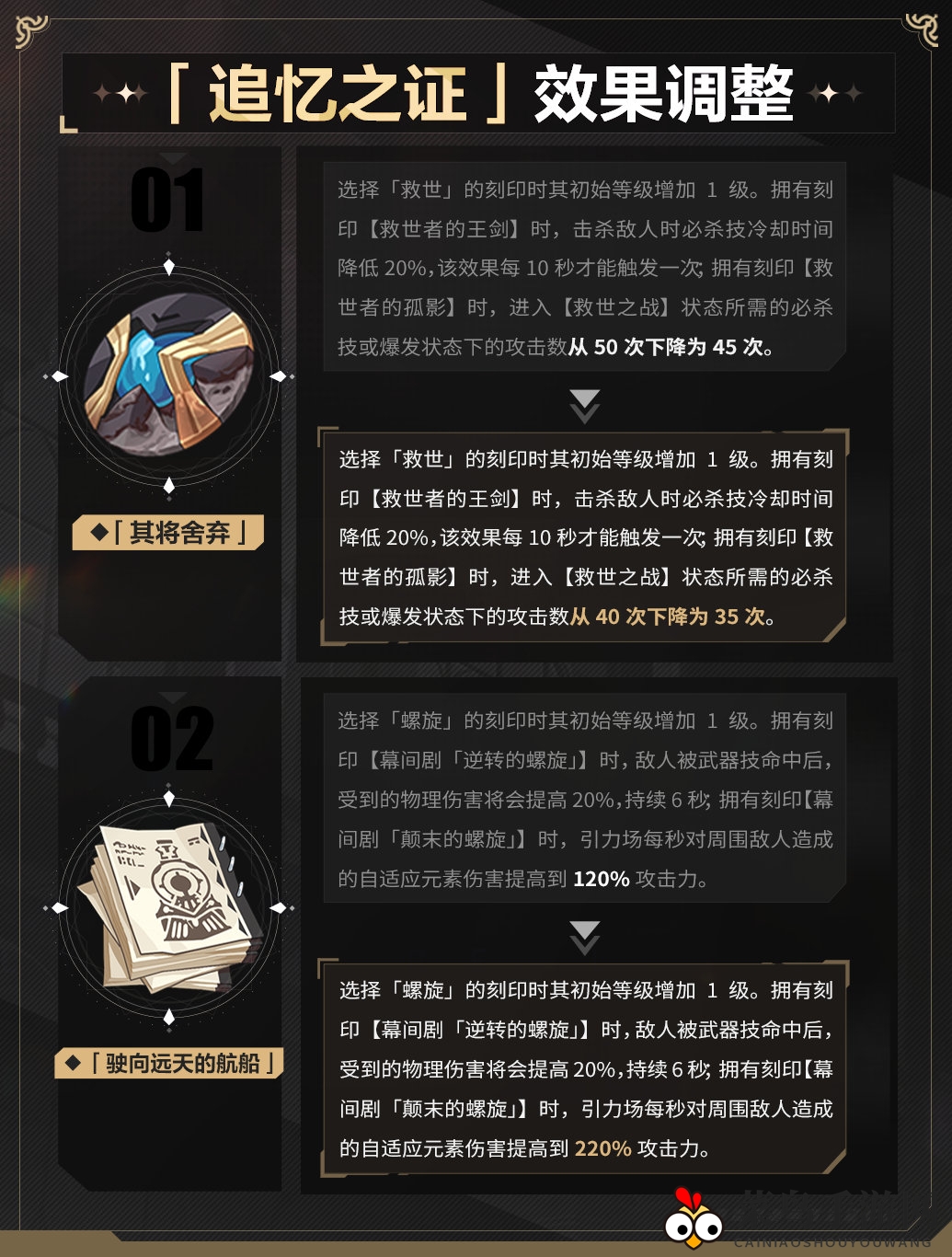 追忆之证「其将舍弃」、「驶向远天的航船」的技能效果进行了调整,具体内容如下: