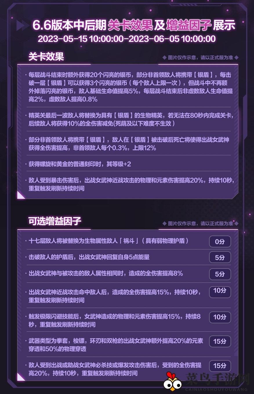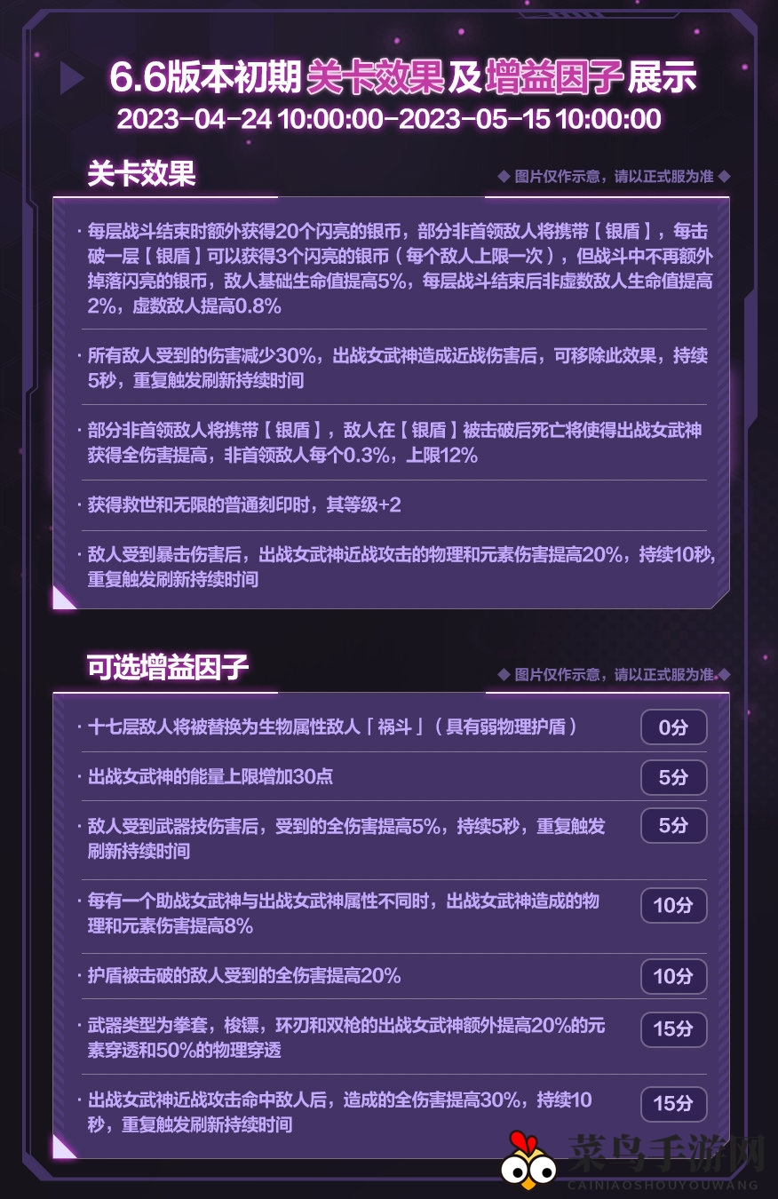6.6版本更新后,玩家在「往世乐土」将面临全新挑战,新的关卡效果及增益因子即将亮相~