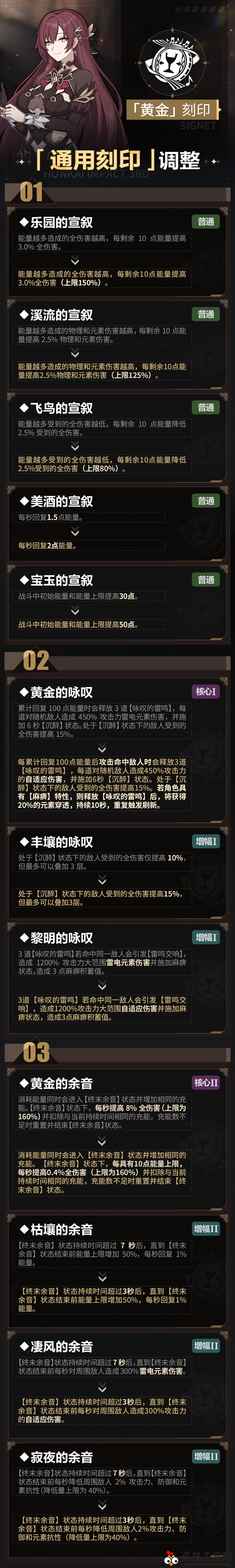 大量通用刻印及升级效果进行了调整,具体详情请查阅下方图片~