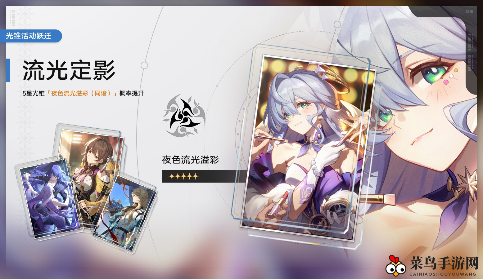 ※ 活动期间,5星光锥「夜色流光溢彩(同谐)」仅在「流光定影」跃迁活动中可获取,5星光锥「烦恼着,幸福着(巡猎)」仅在「溯回忆象」跃迁活动中可获取。