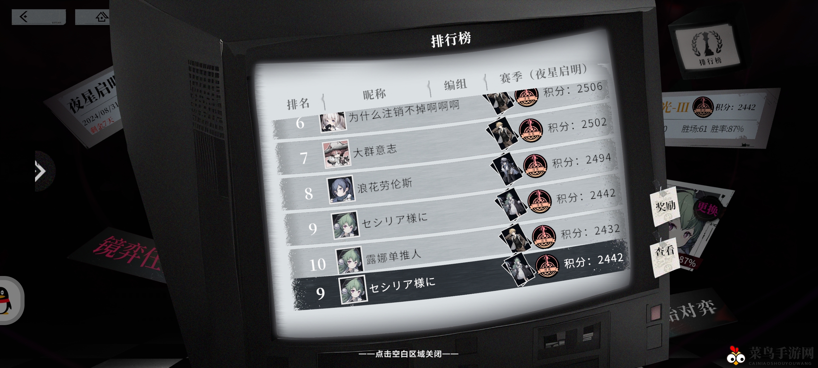 操作要点:第一回合:优先使用门和优先上,运用鲸鱼吞噬穿刺(鲸鱼残血时可用鲸鱼或咲吞噬),切记避免使用镜咲和深红